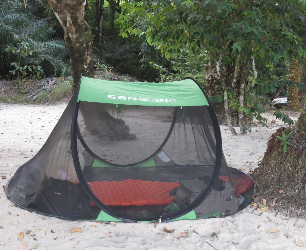 One of the highlights of our holiday was spending three nights camping on what is known as the ‘British’ beach. Our tent only a mosquito net so we could lie back and enjoy the loveliness and shapes of the trees and vegetation illuminated by the large, incandescent moon. So bright it made it difficult to see many stars. I didn’t sleep particularly well, but the upside was seeing the moon set and enjoying looking up at the majestic palms.